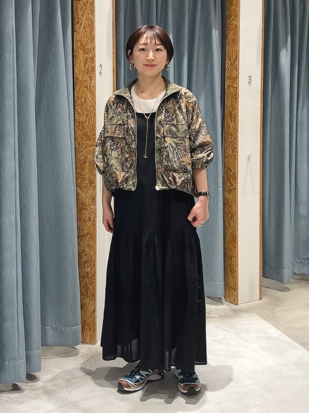 リーフ柄のカモフラはなかなかないのでおすすめ!スタンドカラーで丈も長過ぎないから野暮ったくならないのもポイントです!