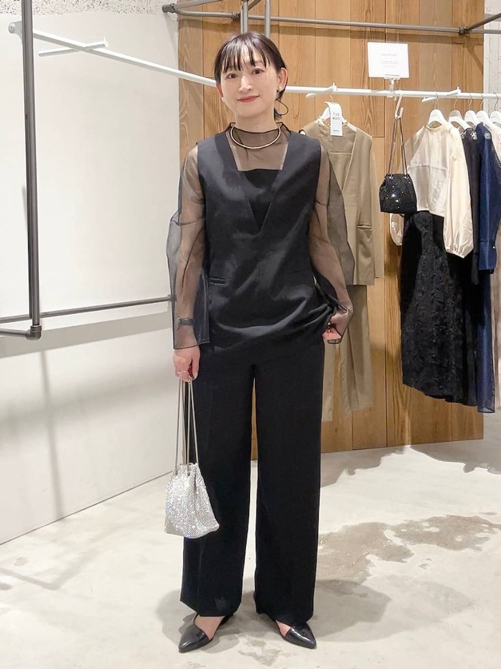 お呼ばれに使えるセットアップ! こちらがとーっても優秀でトップスは、シアーとインナーとベストが一体型になっていて、色々自分で考えなくていいようになってる!バラバラで使えるボトムも普段着にできるからこのセットは損ないアイテム!