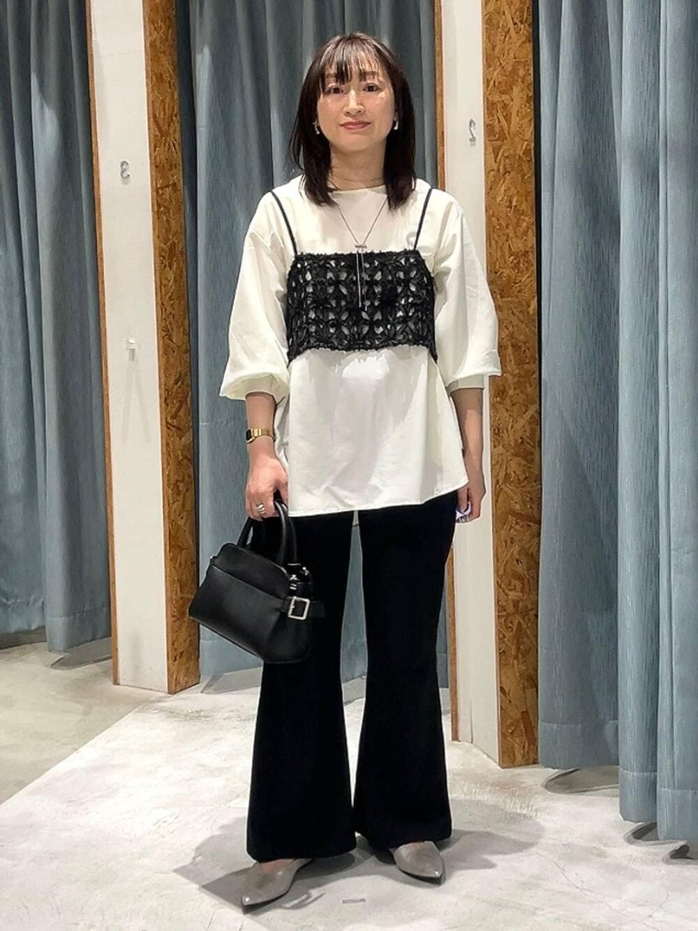モノトーンでまとめてみました!カジュアルなスウェットパンツなのでトップスはブラウスと素材感があるキャミがセットになったアイテムで大人カジュアルに! ーーー--ーーー--ーーー--ーーー--ーーー-- ばーいな。でサイズ感比較! 161㎝/骨格ウェーブ/ヒップ96㎝/下腹78㎝/ウエスト69㎝/太腿48㎝/ふくらはぎ37㎝。こんな体型の人が着れてる服を載せています。サイズ迷ったら参考にしてくださいー! ーーー--ーーー--ーーー--ーーー--ーーー-- ※webで購入する際に、まだLINE連携クーポンを貰っていない方は、購入前にLINE連携をしてクーポンをスクショしてからカートにGO! 500円分使えるよー!