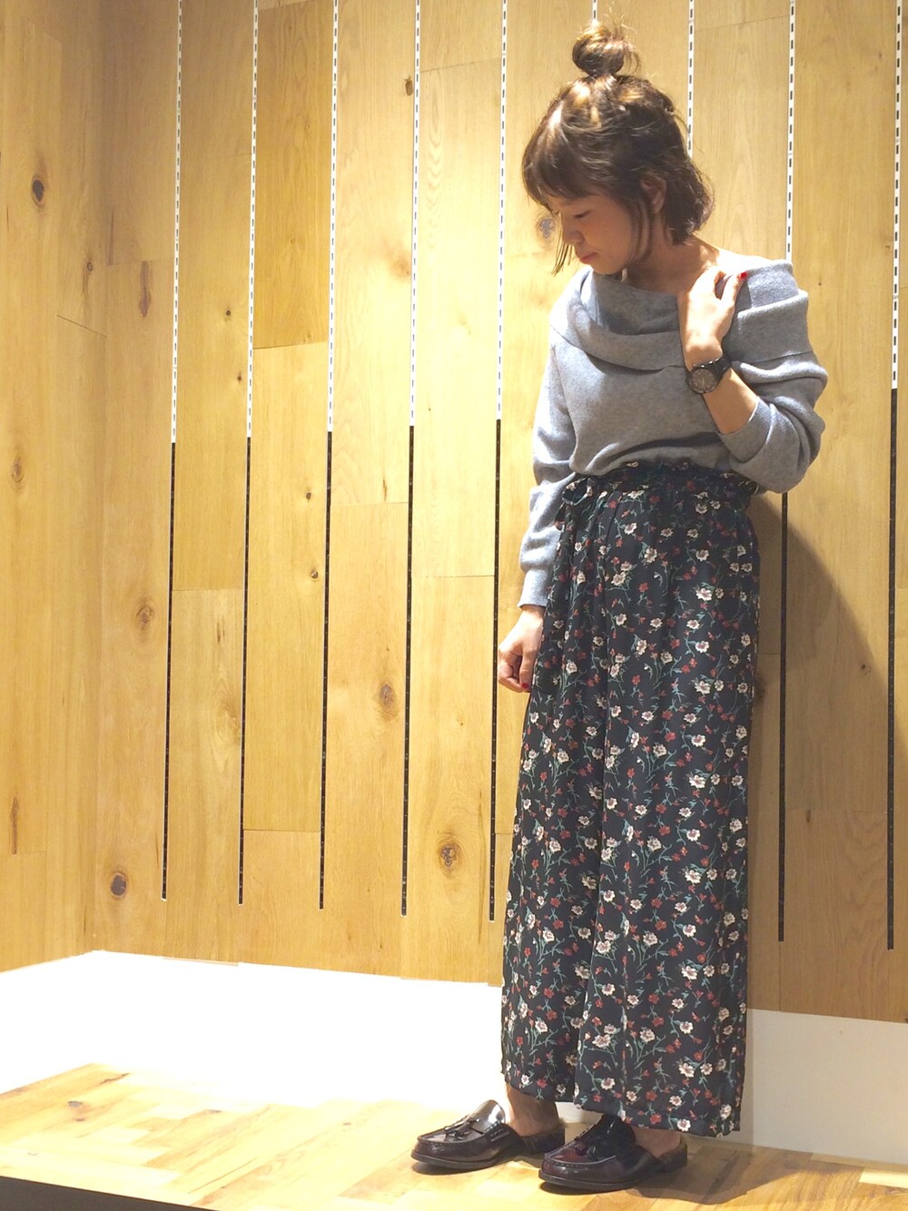 ▷折り返しオフショルニット ▷花柄ワイドパンツ ▷ローファースリッポン いいね&save&フォローいつもありがとうございます♡ 更新がんばります💪💕