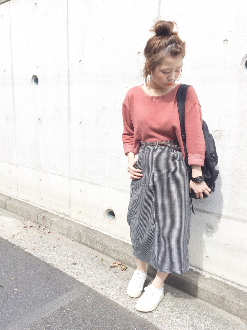 ▷裏毛トップス ▷ヒッコリーのタイトスカート ▷黒リュック ▷ジャガーの白スニーカー 休日コーデです! 横浜中華街にある、知人の台湾料理のお店に行きました✨ 地元なのでよく来るのですがたくさん歩くのでスニーカー欠かせません!