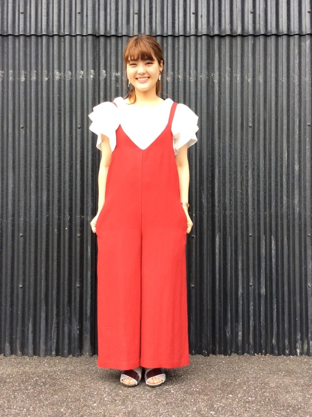 RED × WHITE。この夏気になるRED! フリルたっぷりブラウスとサロペット。 .