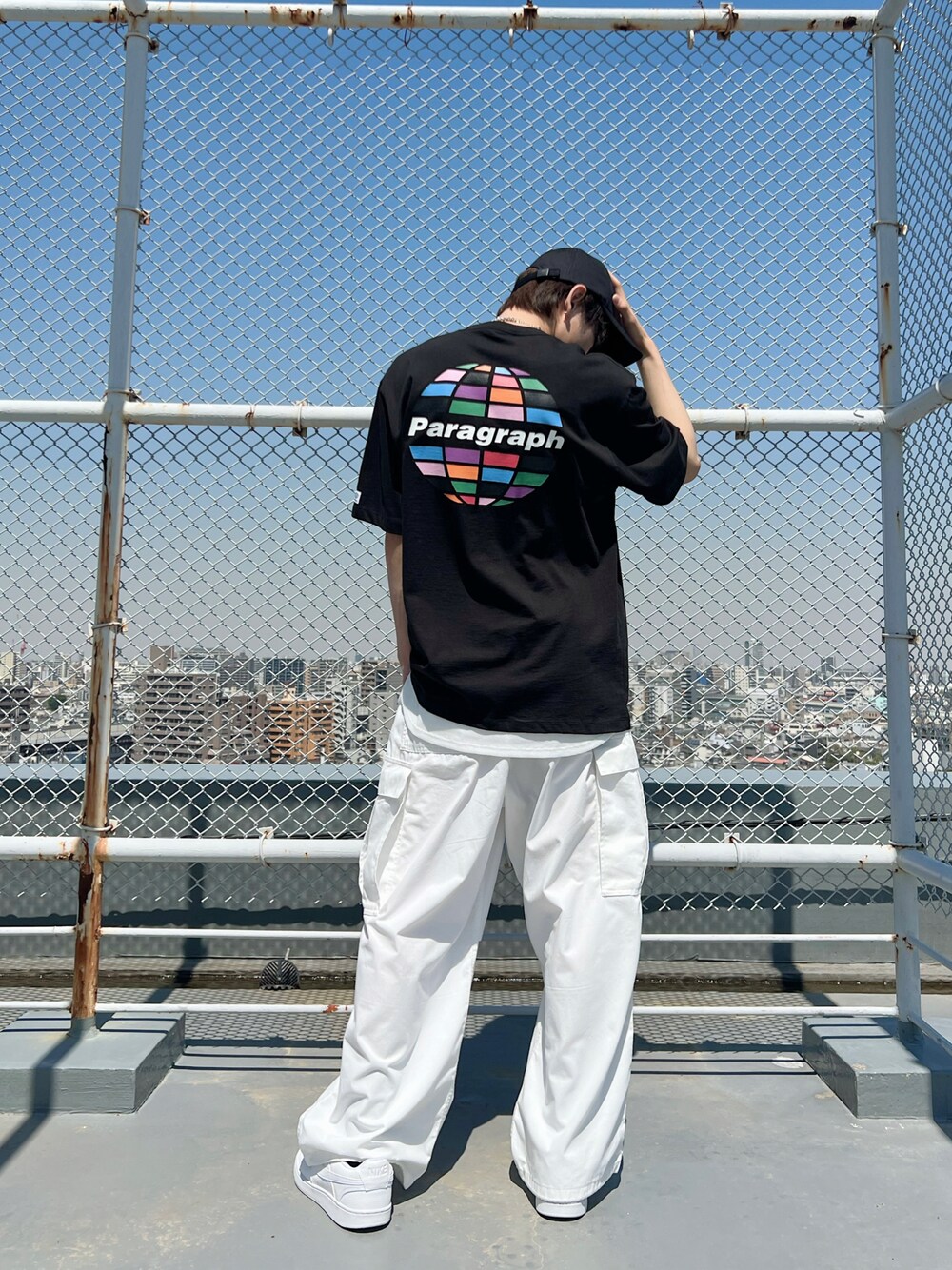 稲見悠寿のTシャツ/カットソー「Paragraph(パラグラフ)/Cube Earth T-shirt/サークル キューブ ロゴ バックプリント オーバーサイズ 無地 コットン Tシャツ」を使ったコーディネート