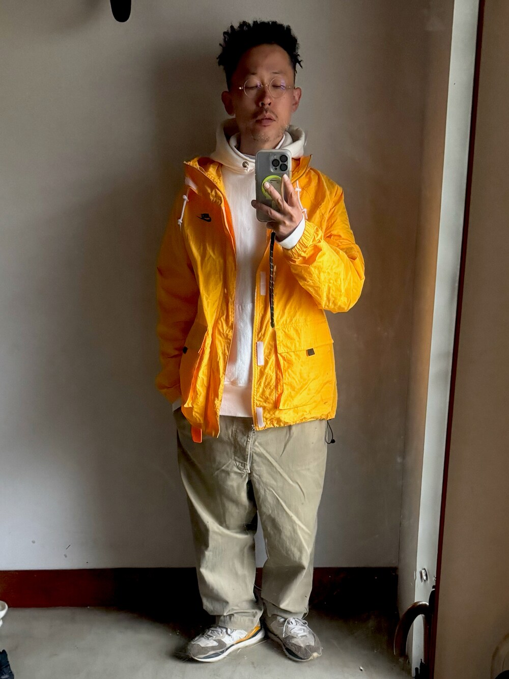 イエロー系のその他アウターを着用したメンズの春コーディネートの1枚目の写真