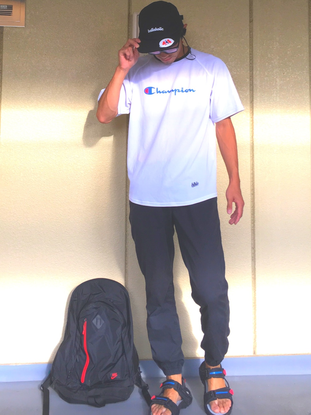 championとballaholicのコラボTシャツ ACGのサンダル 色合いが同じなので好きな組み合わせ
