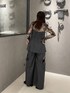 153cm/骨格ウェーブ ■セットアップ コルセットとワイドパンツのセットアップ✨ お洒落見え間違いなしです!! 緩めのコルセットなので ベルトでウエストマークするのもおすすめ👌🏻 パンツは少し丈が長めです🥺 スリット部分の開き具合は調節できるので 少し丈感も変えれます🤍