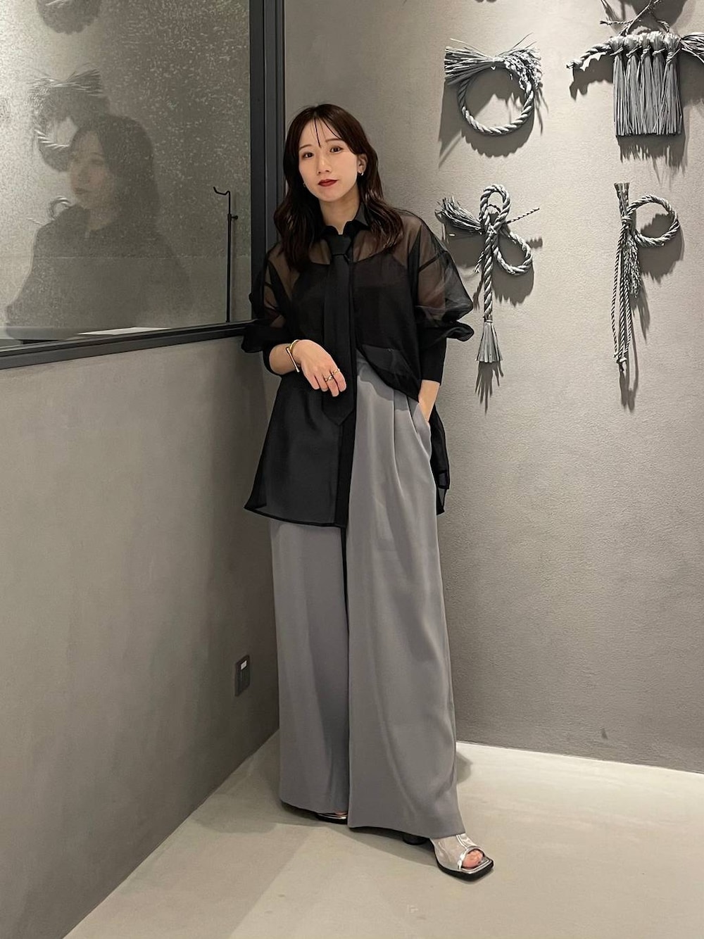 153cm/骨格ウェーブ ■シャツ ネクタイとセットのシアーシャツ🤍 別々で使えるので着回し力も👌🏻 シャツはオーバーサイズで 羽織りで着るのもおすすめです✨