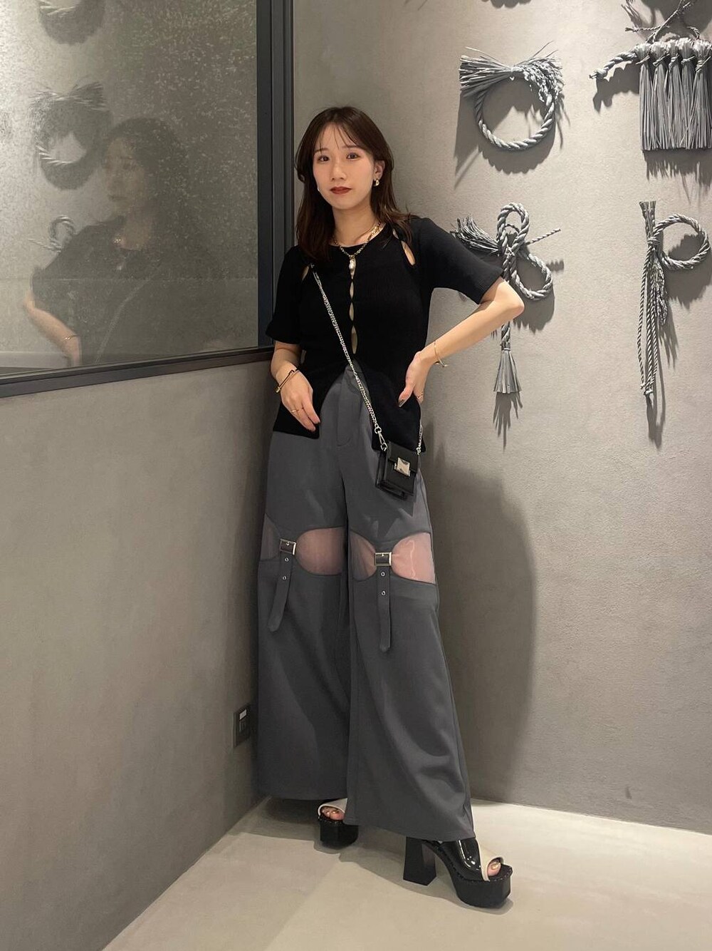 153cm/骨格ウェーブ ■パンツ 透け感が可愛いワイドパンツ💫 透けるのは前だけで後ろ側はなしです! 少しフレアなシルエットで脚長効果も◎ 長すぎない丈で履きやすい🫶🏻