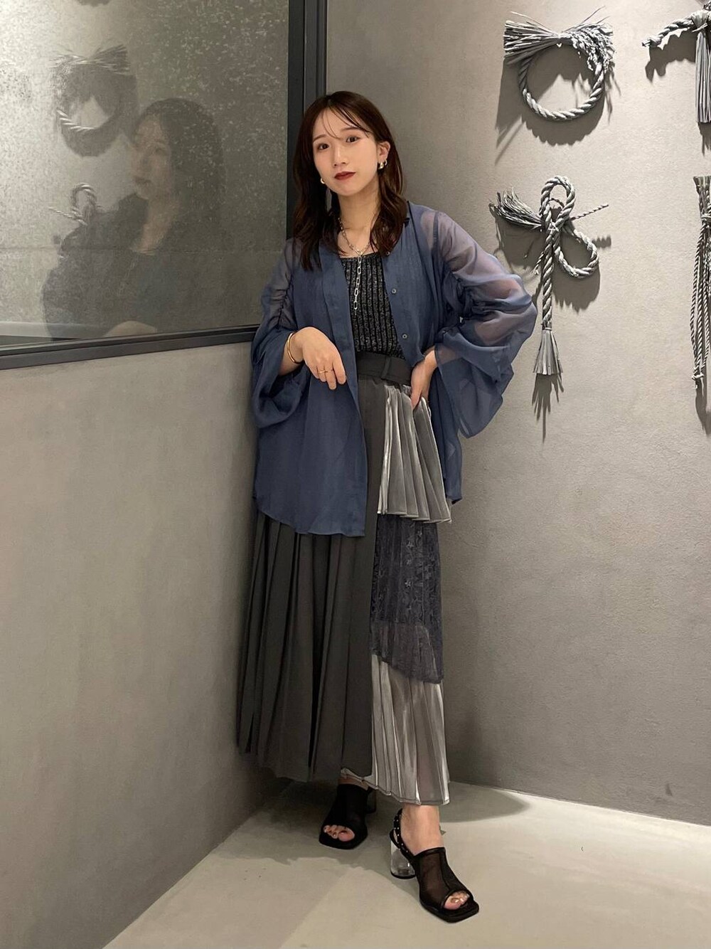153cm/骨格ウェーブ ■シャツ 袖ギャザーのシアーシャツ🤍 ふわっとボリュームでます! シャツはオーバーサイズで 羽織りで着るのもおすすめです✨