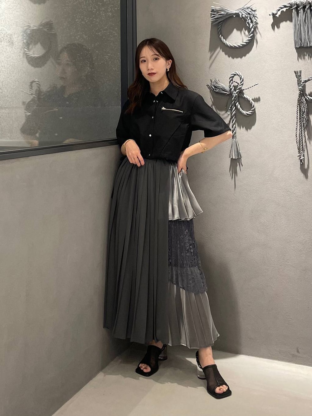 153cm/骨格ウェーブ ■スカート プリーツ×異素材スカート🖤 見た目よりも軽くて楽ちんです! ウエストも後ろゴムで履きやすさ◎ 低身長さんにもおすすめの丈です✨
