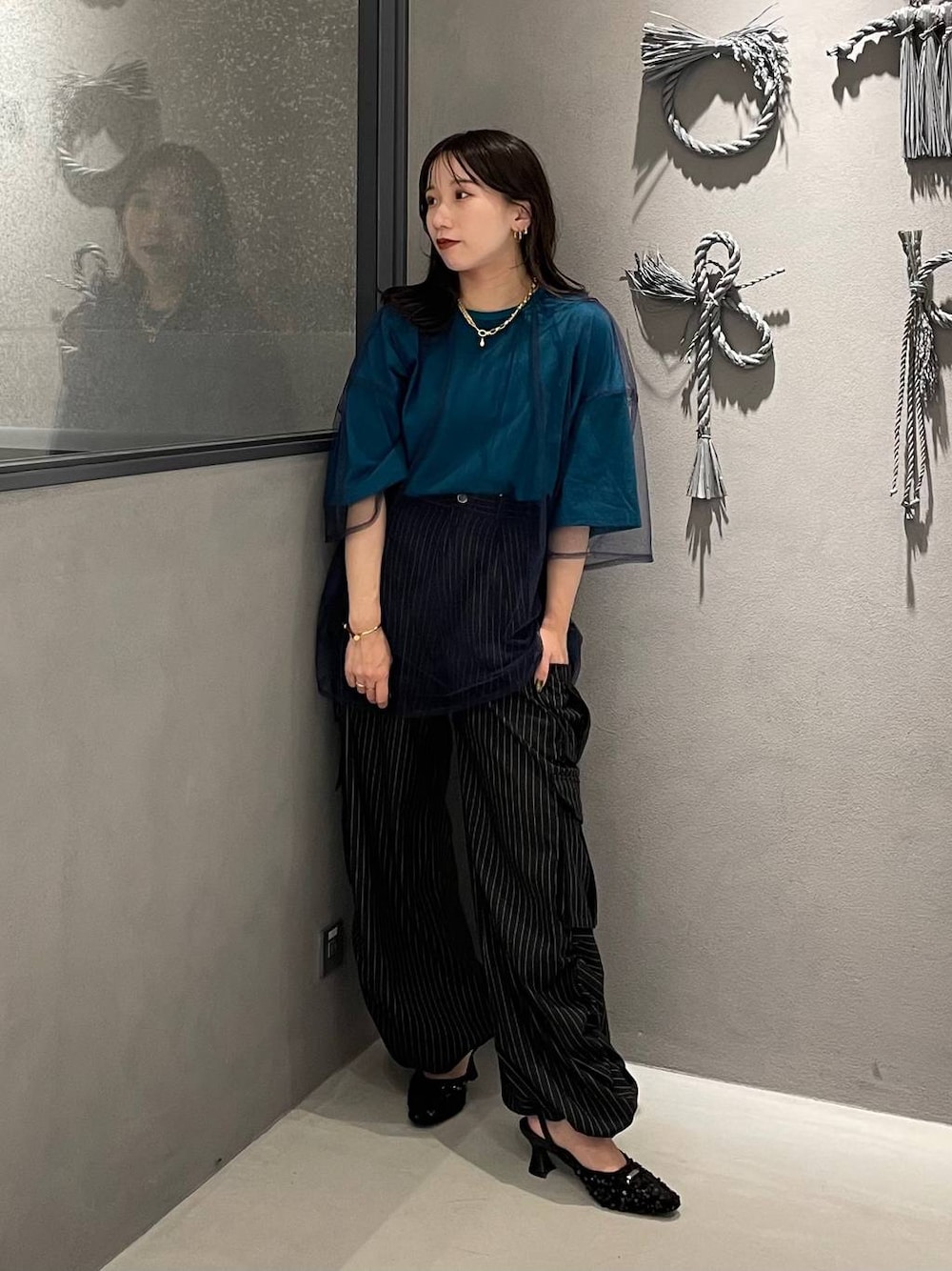 153cm/骨格ウェーブ ■Tシャツ チュールレイヤードのTシャツ🤍 ゆるっとしたBIGサイズで お尻まで隠れる丈です! 1枚でおしゃれ見えするアイテム✨