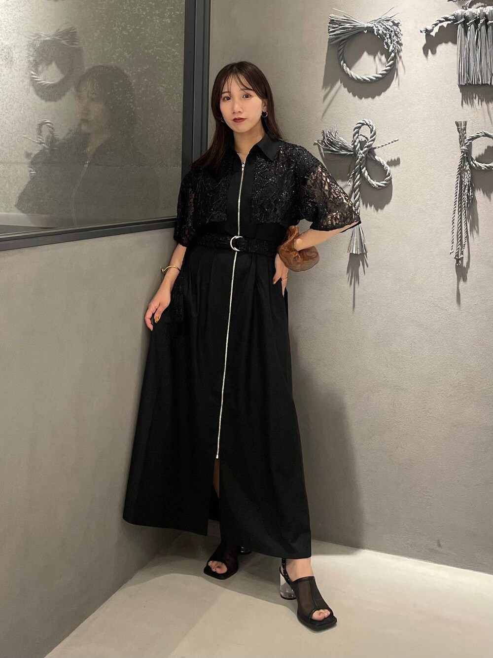 153cm/骨格ウェーブ ■ワンピース さらっとした生地とラメレースのドッキング! ZIPデザインなので羽織りでも🫶🏻 透け感もあって涼しく着れます✨ 丈は長すぎず足首ぴったり◎ ベルトを締めると、より着やすい丈になります🤍