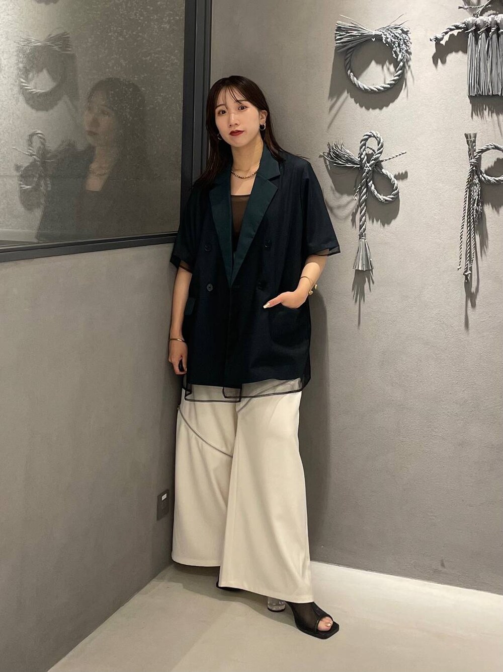 153cm/骨格ウェーブ ■ジャケット 店頭でも大人気の半袖ジャケット! チュールが重なってるデザインで 羽織るだけでお洒落見えする💖 裏地がないからシャツ感覚で羽織れて 意外と涼しいアイテムです✨