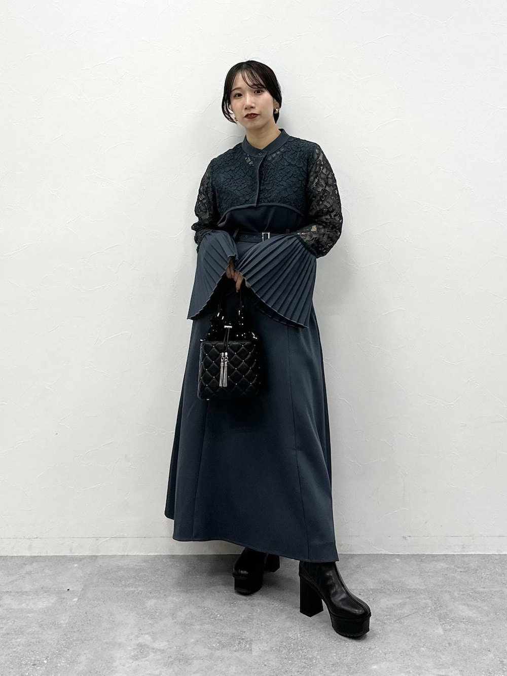 153cm/骨格ウェーブ ■オケージョンアイテム THEオケージョンなワンピース👗 袖のプリーツが特徴なワンピです! レースの切り替えがウエスト上で スタイルアップして見えます! 着丈は低身長の方がヒールじゃなくても着やすい丈✨
