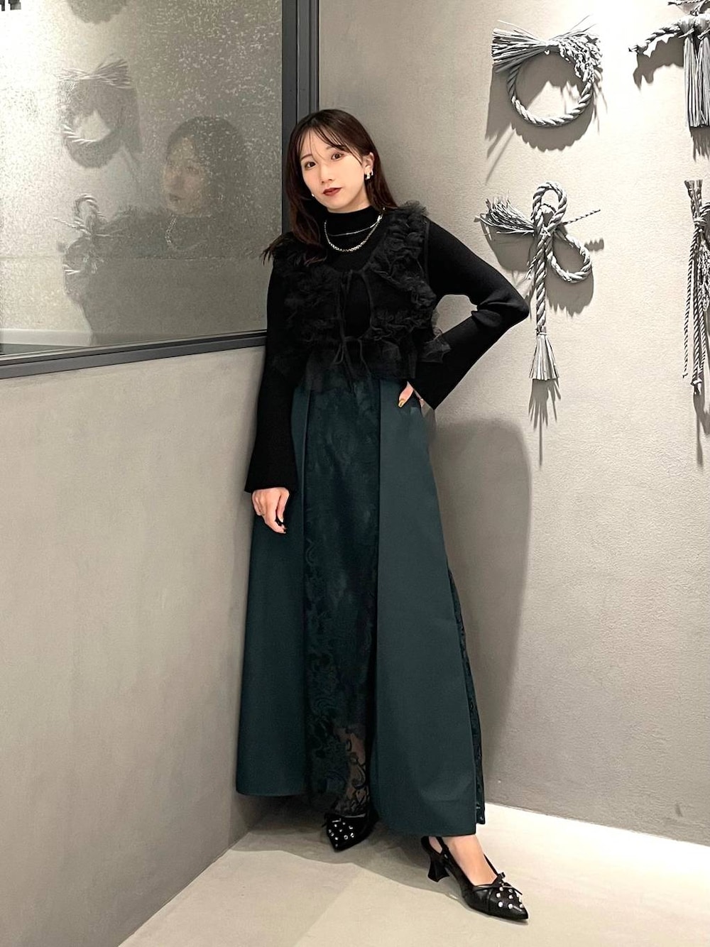 153cm/骨格ウェーブ ■ビスチェ*ニット チュールビスチェとニット2点セット!✨ 別々でも着回し力抜群です! チュールビスチェはインナーを変えれば オールシーズン使いやすいです🫶🏻 ニットは袖フレアで無地ニット! 柔らかくて肌触りが良いです🤍
