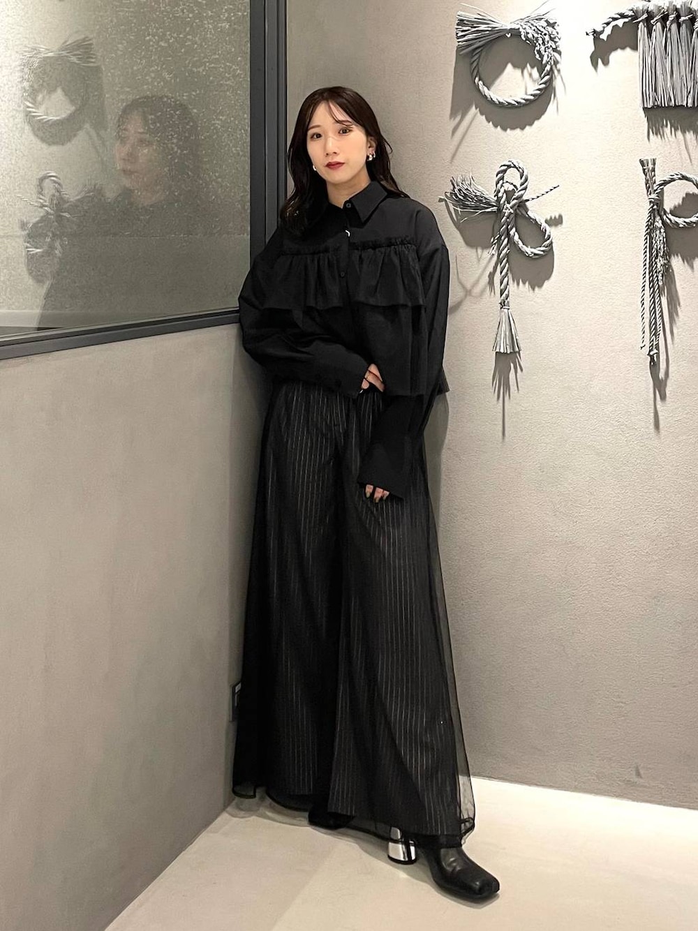 153cm/骨格ウェーブ ■シャツ チュールドッキングのシャツ🤍 薄手のシャツで使いやすいです✨ 1枚でお洒落見えです! ショート丈でスタイルアップ見えします🫶🏻