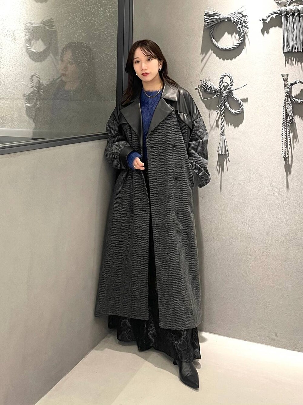 153cm/骨格ウェーブ ■コート ウーリーテック素材のコート! 暖かい・軽い・コスパ◎なアイテムです🤍 切り替えデザインなのも可愛い✨ ベルト付きで前閉じて絞るのも◎ ボリュームニットにも余裕で羽織れます🙂↕️