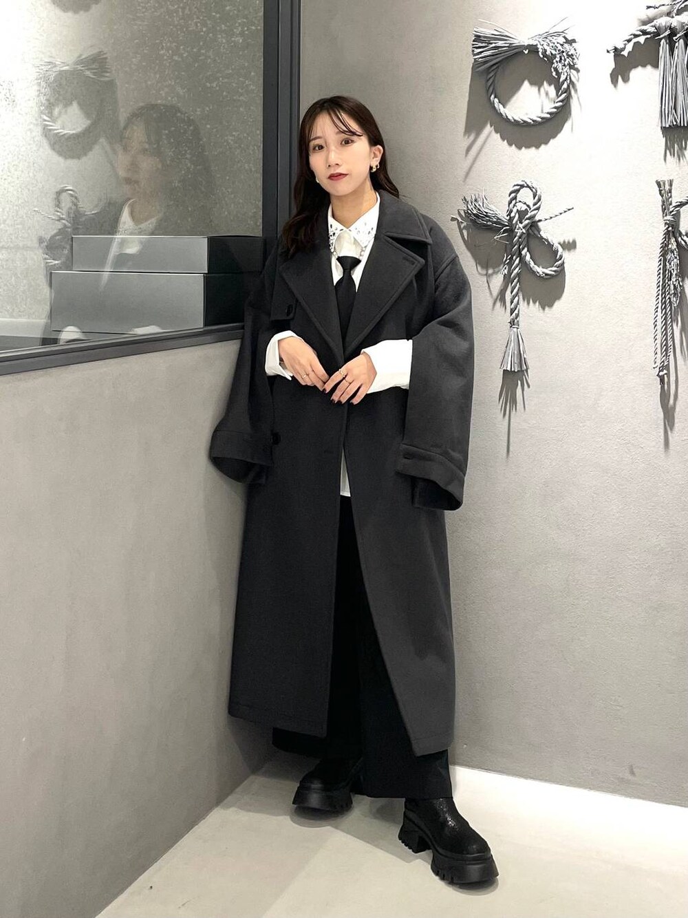153cm/骨格ウェーブ ■コート ウール55%で暖かく着れるロングコート🖤 ベーシックなトレンチデザインで長年使えます! 毛足短めで毛玉ができずらい/お手入れしやすいです✨ ウールなので少し重みはあります! 身幅や腕周りはゆったりめで着込むこともできます◎ 袖が肘あたりまで開けれるデザインで ケープっぽく着るのも可愛いです💐