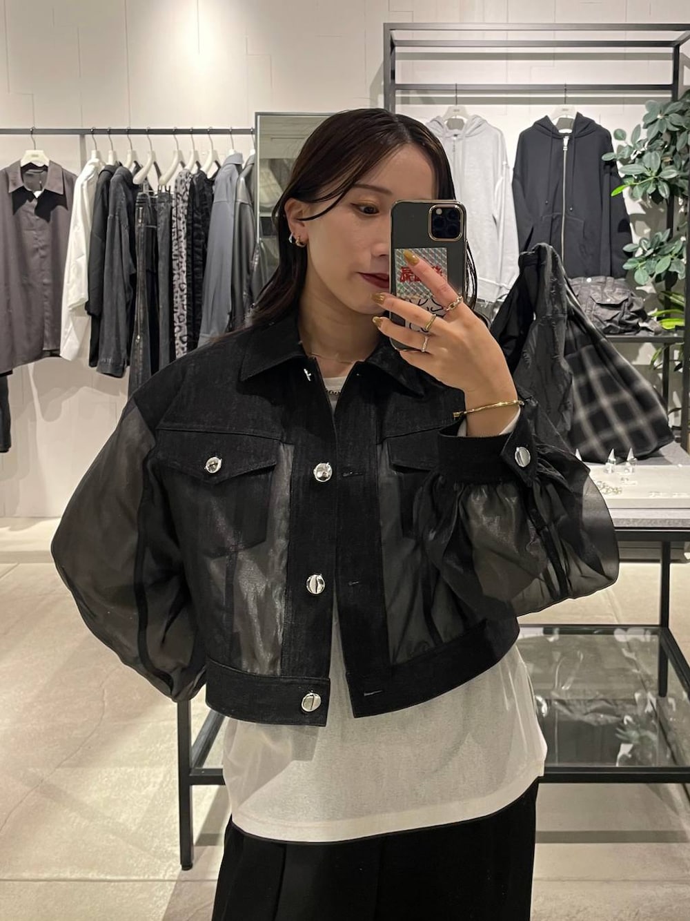 153cm/骨格ウェーブ ■ブルゾン シアー×デニムのお洒落ブルゾン🖤 軽く羽織るのにちょうど良いです! ショート丈なのでスタイルアップにも◎ 袖周りが広いので、インナーは選ばずに着れます✨