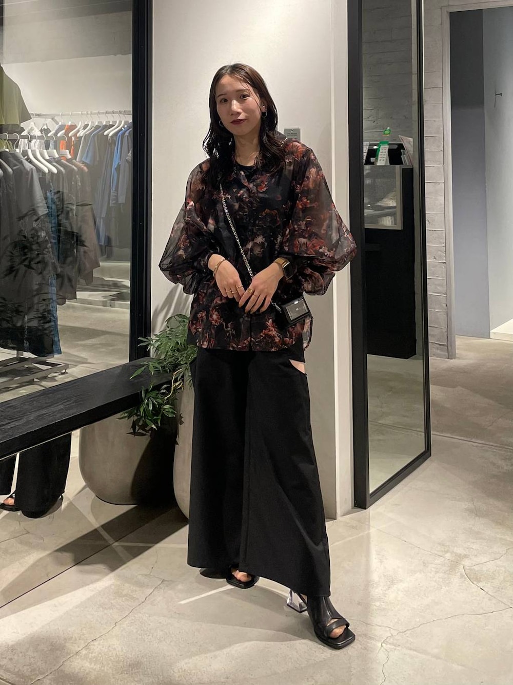 153cm/骨格ウェーブ ■シャツ HAREらしい花柄シアーシャツ✨ ゆるっとしたサイズ感です! 透け感が少し抑えめなタイプで露出控えめなのも◎