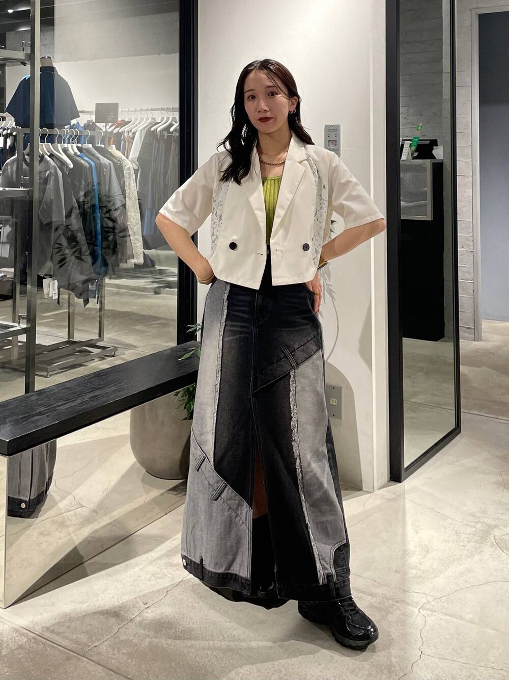 REIA(HARE.JP)のタンクトップ「2WAYスクエアラメニットタンクトップ(HARE)」を使ったコーディネート