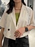 153cm/骨格ウェーブ ■ジャケット 夏大活躍のショート丈半袖ジャケット! レースの切り替えデザインでインナー見せできます🤍 裏地なしで、シャツ感覚で羽織れるのが◎
