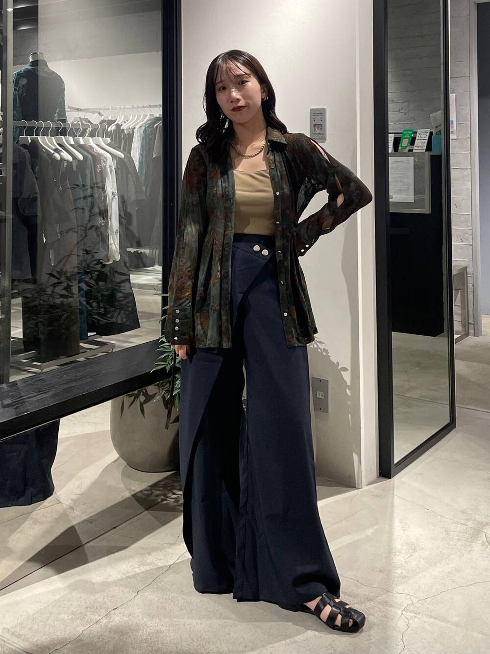 153cm/骨格ウェーブ ■シャツ シアーベロアのお洒落シャツ🤍 腕のラインはスリットがあって肌見せできます✨ いつもと違う細身シルエットで着痩せします! 柔らかい生地でチクチク感もないので肌触り◎