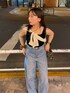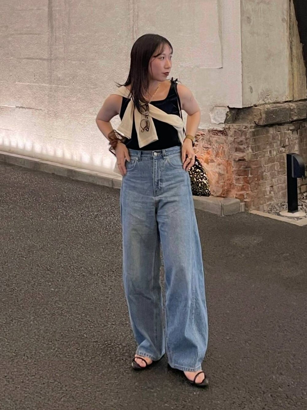 153cm/骨格ウェーブ 高校の頃からの友達と 日比谷で飲み歩きコーデ🍻✨ 意外と歩いたからぺたんこ靴で行きたくて 楽なデニム履いてったら大正解でした✌🏻