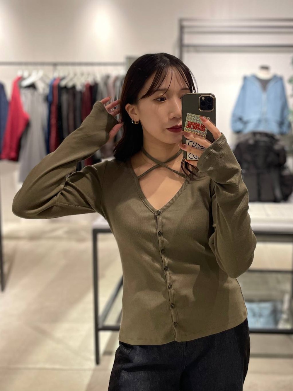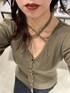 153cm/骨格ウェーブ ■トップス 狙ってるピタトップス🤍 程よいゆとりもあって肌触り良くて とっても着やすいです! 首の紐は前で結んだりもOK✨ 私は後ろに垂らしてネックレスもつけるのが◎