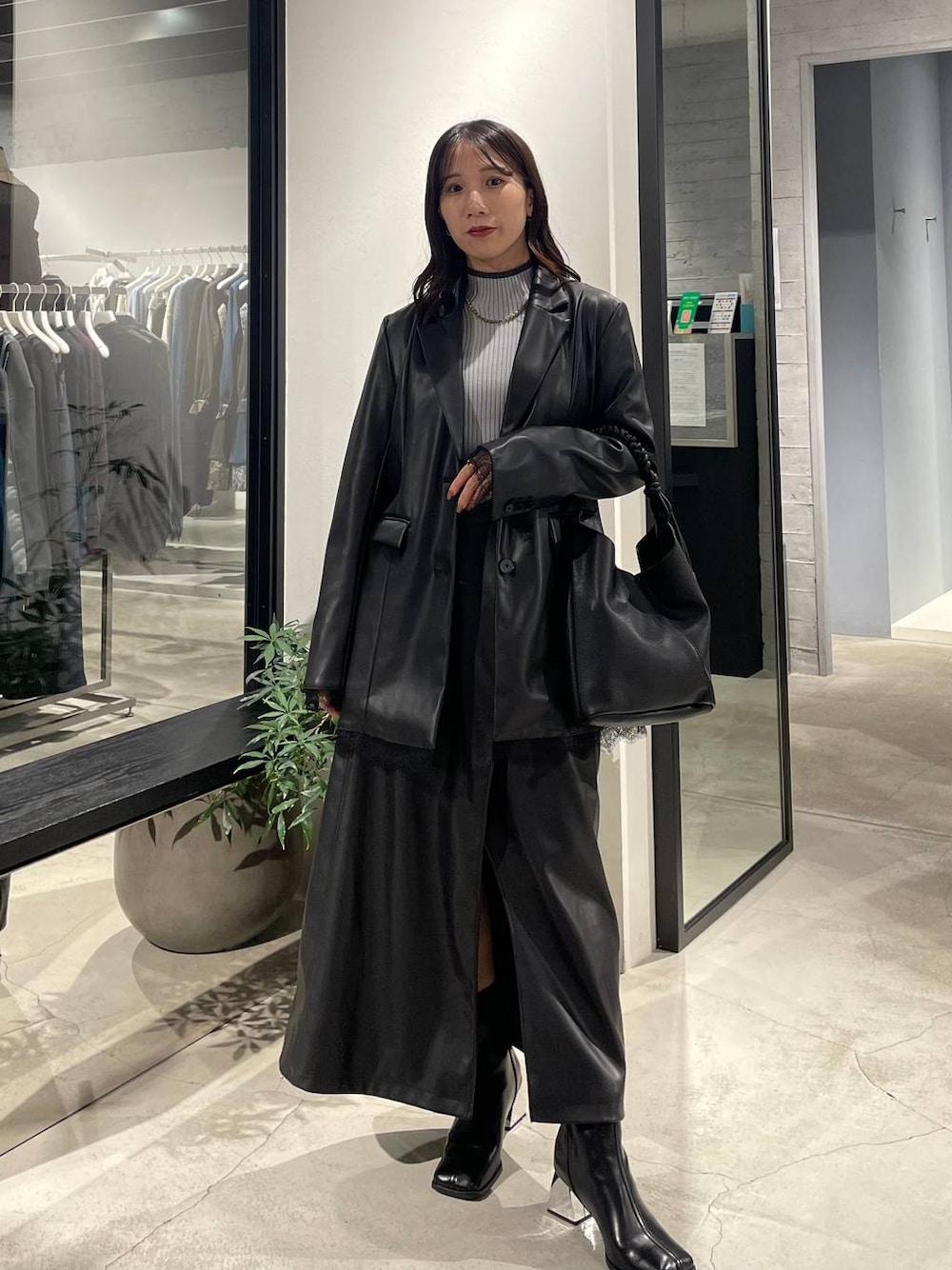153cm/骨格ウェーブ ■ジャケット 綺麗めなテーラードジャケット✨ レザーですが意外と軽くて楽ちん! 柔らかい生地なのでとても着やすいです。 お尻まですっぽり隠れる丈なのも◎ 袖周りは程よくゆったりしていてゆとりもあります。