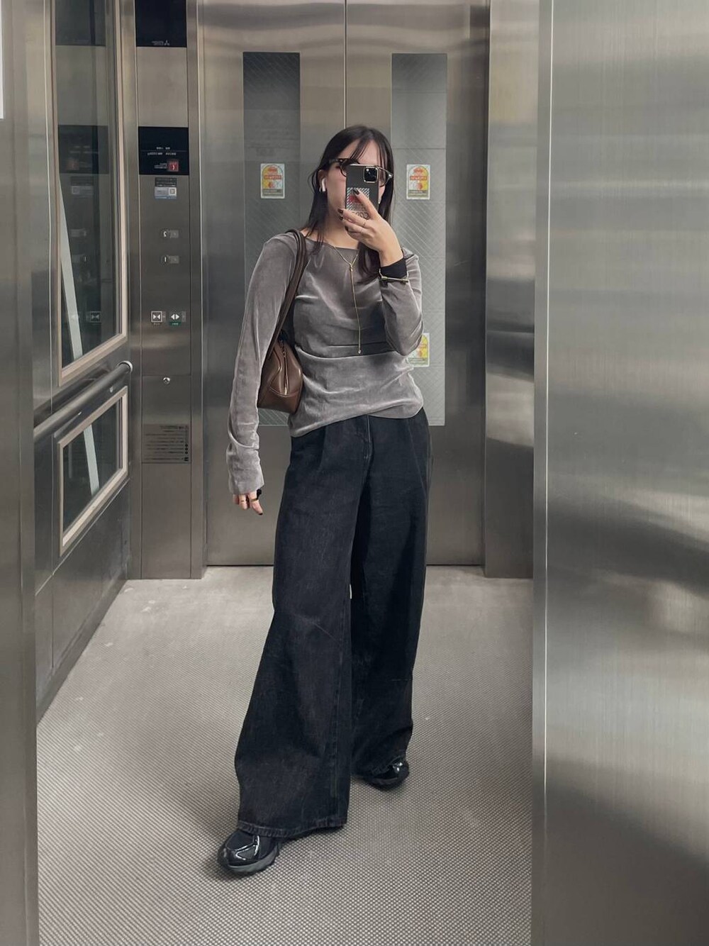 153cm/骨格ウェーブ ■トップス リアルバイのシアーベロア💖 こういうトップスは何枚あっても使える◎ 白とグレーを購入しました! 着痩せ力抜群です〜✨✨