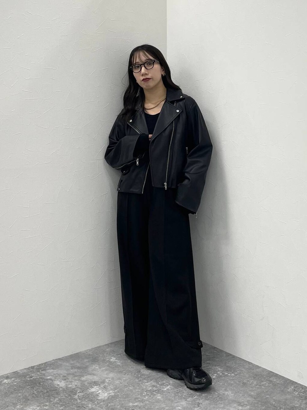 153cm/骨格ウェーブ ■ライダースジャケット かなりおすすめのライダースジャケット🖤 今季のは、少しゆとりのあるサイズで ボリュームのあるインナーも着やすいです✨ 本革(シープレザー)使用ですが 軽い・柔らかいのが特徴! かなり扱いやすい革で初めての本革にも🙌🏻