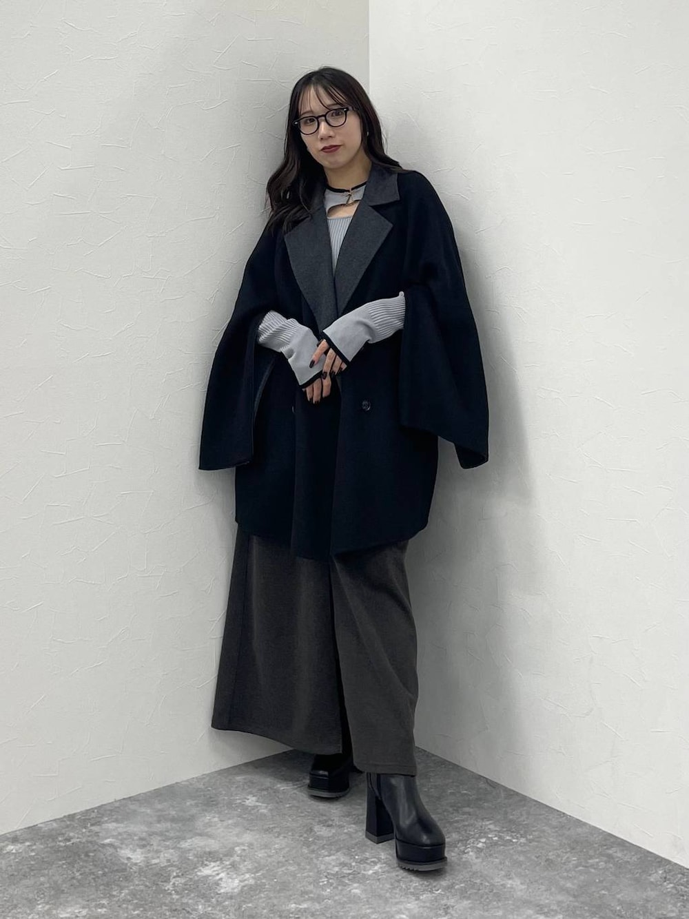 153cm/骨格ウェーブ ■ジャケットコート 冬におすすめなジャケットコート。 ミドル丈で、色々合わせやすいです✨ 袖開きデザインなので、 ボリュームのあるインナーの時は開けるのも◎