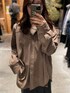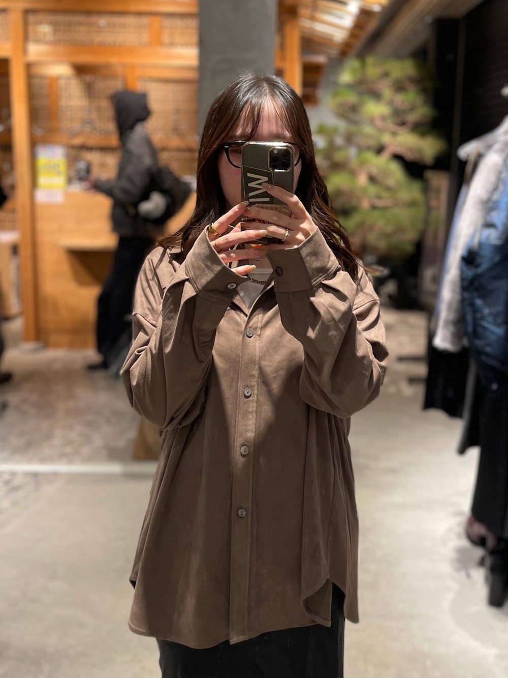 153cm/骨格ウェーブ ■シャツ リアルバイのスウェードシャツ! 今年絶対欲しくて買いました✨ 柔らかい生地で着やすく、お尻まで隠れる丈感です!