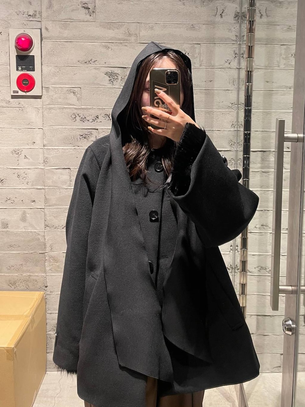 153cm/骨格ウェーブ ■ミドルコート フードマフラー付きのミドルコート! 軽いのでノンストレスで着れます◎ 丈はお尻が隠れるくらいで 袖は広めなので中に着込むのも🆗 スッキリ見せて着たい時は 袖のボタンで絞るのが◎