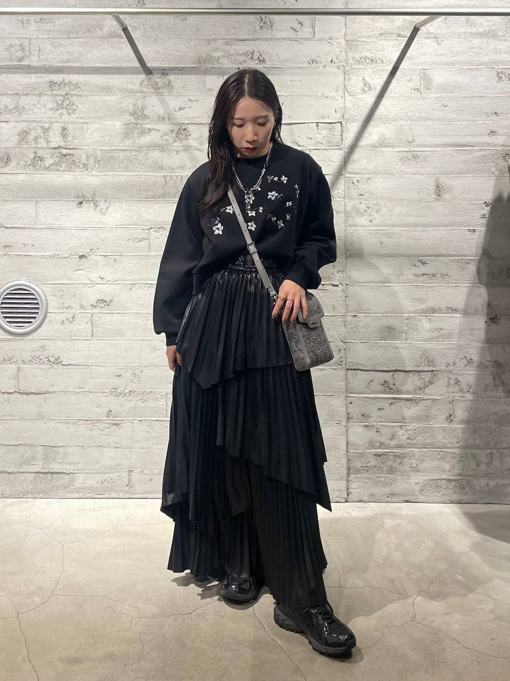 153cm/骨格ウェーブ ■スウェット 肌触り◎な刺繍スウェット! 綺麗目にもカジュアルにも使えます◎ ショート丈だけどウエスト周り隠してくれる このサイズ感が推しポイントです✨ ■スカート 後ろ完全ゴムで楽ちん! レザー素材ですが薄手でボリューム抑えめ! 腰回り気になる私でも気にならず 丈も長すぎないのでスニーカーで履けました👟