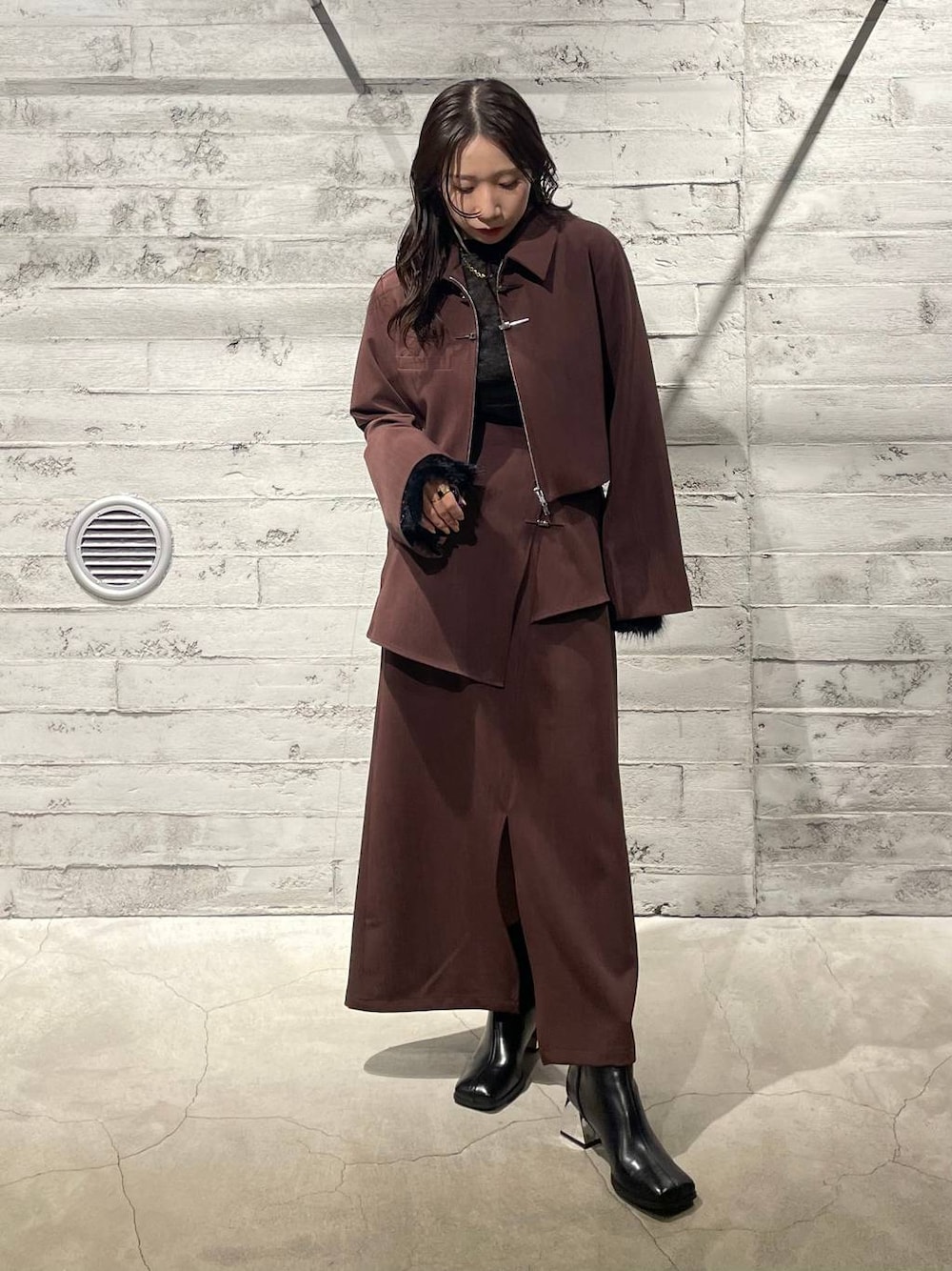 153cm/骨格ウェーブ ■セットアップ ジャケットはショート丈でスタイルアップ見え! さらっとした生地感で腕周り広め◎ スカートは前スリットで歩きやすい✨ ウエスト後ろゴムです!