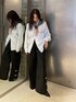 153cm/骨格ウェーブ ■シャツ パッチワークデザインで 1枚でおしゃれ見えするシャツ✨ さらっとした生地でシワになりにくいです◎ 体型カバーにもちょうどいいサイズ感🫶🏻