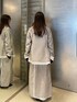 153cm/骨格ウェーブ ■セットアップ 大人っぽく見えるセットアップ✨ ストライプ生地とシアー素材が 重なったデザインでカジュアル見えします◎ ジャケットはお尻まで隠れる丈で ゆったりしすぎない肩幅です! スカートは後ろゴムで履きやすい! 丈も長すぎないです✨