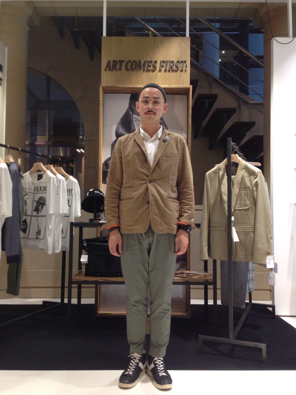 ジャケット、シャツ、スラックスに わかりやすくハイカットのスニーカーで外してみました。