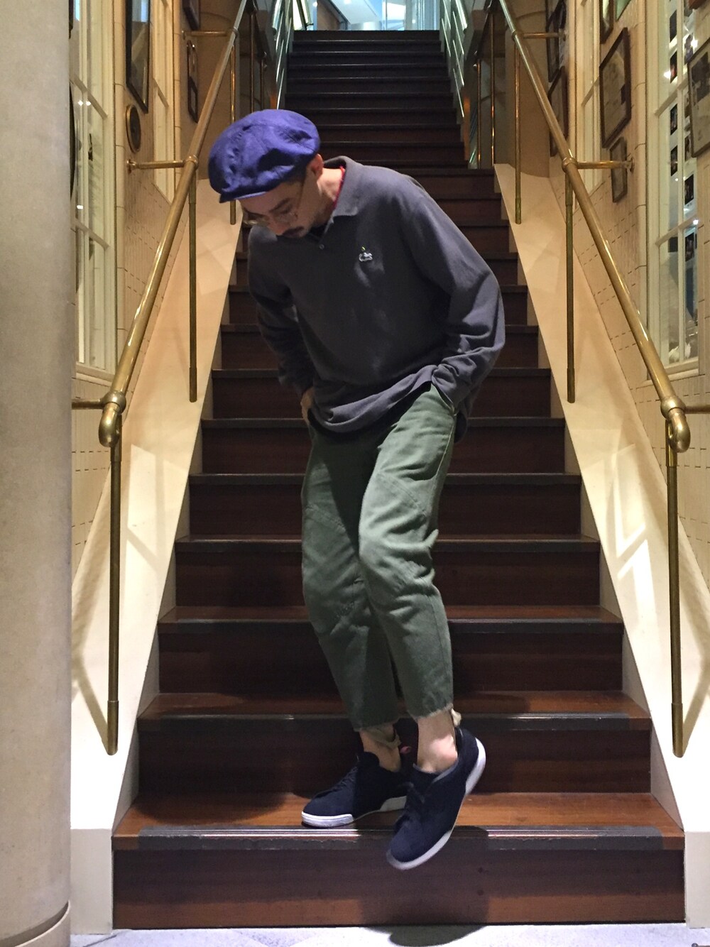 Casquette : AVEC CES FRERES by ART COMES FIRST Polo Shirts : LACOSTE Pants : MYAR Shoes : Reebok Classic × UNITED ARROWS & SONS ラコステのオーバーサイズのポロシャツを 短い丈のパンツですっきりと。