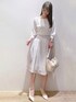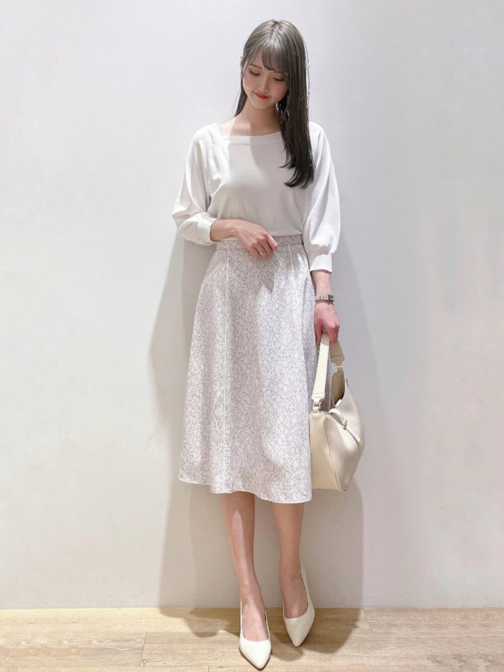 mizuki 160cm トップスはスクエアネックで、程よくデコルテ見せ✨ スカートは落ち感のある生地で動きのあるシルエットです☺️