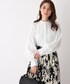 みさか 158cm 明るい印象になるライトグレーのセットアップ ブラウスもホワイトをチョイスし、ワントーンのコーディネートでおしゃれな雰囲気になります✨ ジャケットは158cm Mサイズ着用していますがストレッチも効いて、もたつかずちょうど良い着心地です。