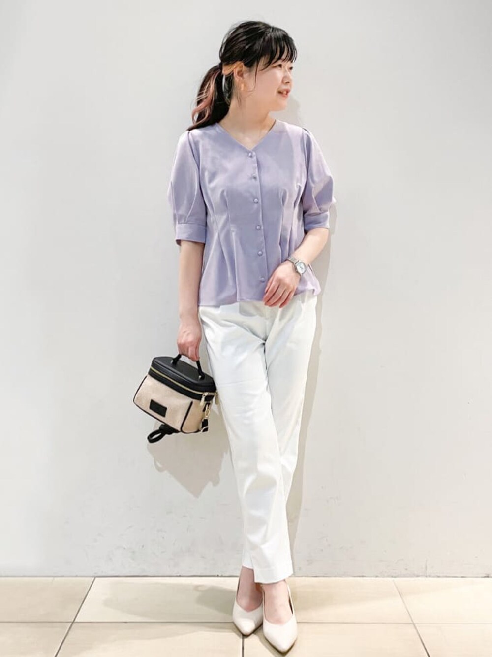 はっしー 161cm スタイルアップが叶うペプラムシルエット🎶 フィット感のあるデザインですが、ストレッチ性がある素材なので、 快適に着用できますよ☺️✨
