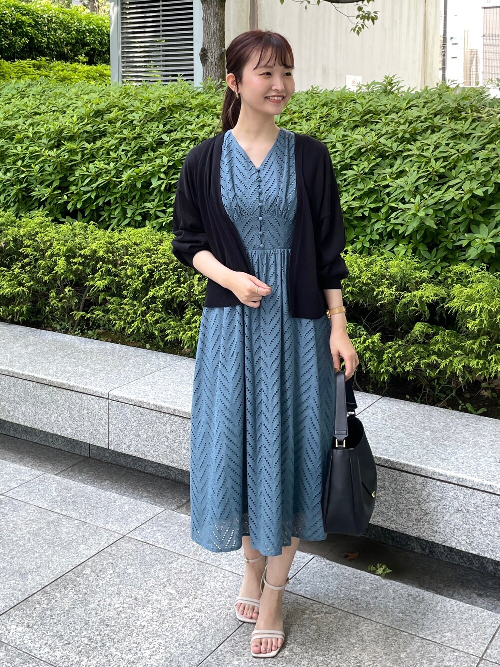 みさか 158cm UVケア・接触冷感・マシンウォッシャブルの機能付きカーディガンは、腰にかかる着丈なので、サラッと羽織ることができます✨ ワンピースはフレンチスリーブなので、二の腕がほっそり見えします☺️
