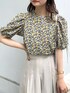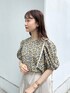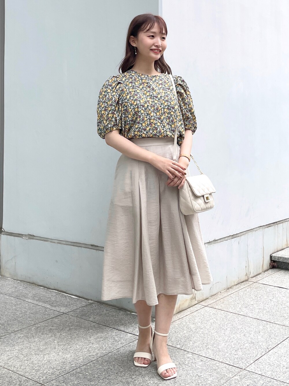 みさか 158cm レモン柄が夏らしい華やかなブラウスは、パフスリーブで二の腕をカバーしてくれます。丸首なので、女性らしい柔らかな印象です✨