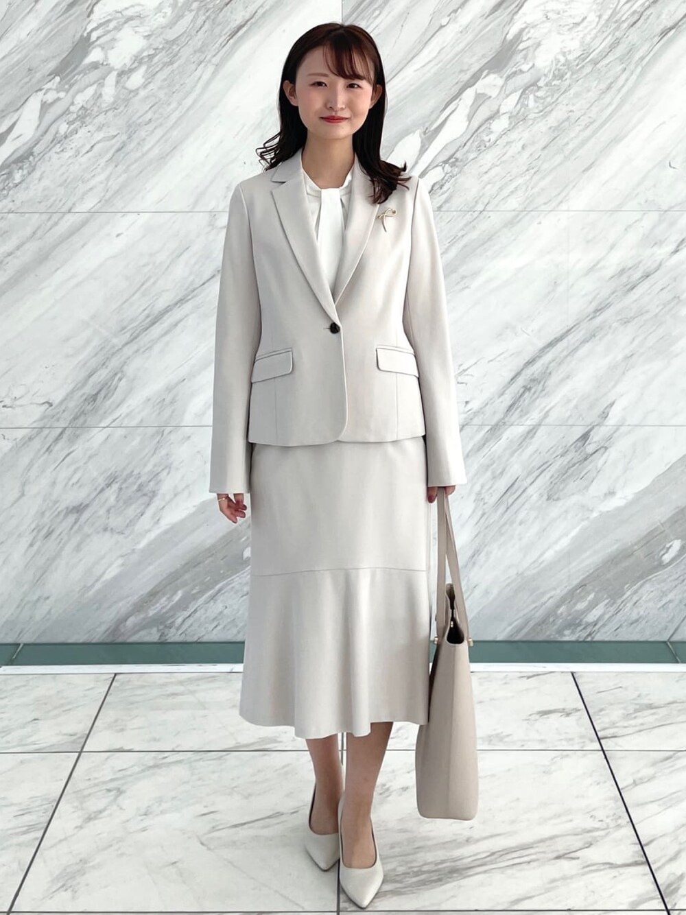 みさか 158cm 入学式などのセレモニーシーンにぴったりなきれいめスタイリング。 ジャケット・スカートともに 伸縮性が効いていて動きやすく、着脱がしやすいです◎ 158cm Mサイズ着用で、ジャストサイズ。バストラインや二の腕周りが気になる方はLサイズがおすすめです! スカートはマーメイドシルエットが上品な印象になります。骨格ウェーブで張った腰周りが気になりますが、切り替えデザインと程よい身幅で、このスカートは綺麗に着こなすことが出来ます。