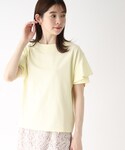 index スタッフ(INDEX)のTシャツ/カットソー「◆フリルスリーブカットソー【UV/接触冷感/洗濯機洗い可/5色展開】」を使ったコーディネート