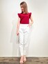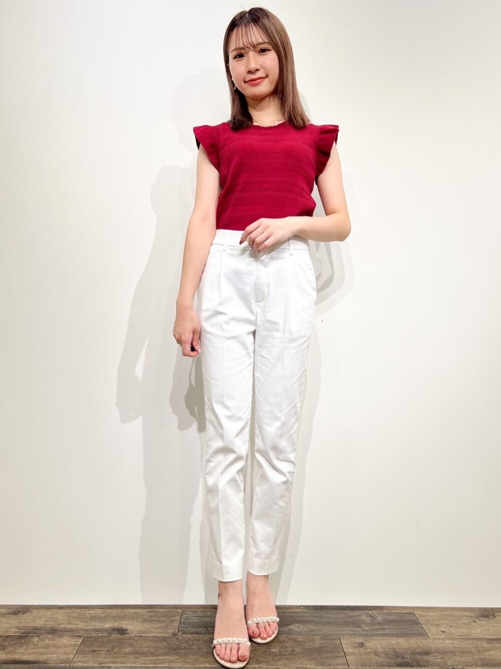 misakichi 158cm 編み地変化がとても着映えするデザインのトップス!フリルスリーブなので華やかに着こなすことができます パンツは脚のラインが細見えするデザインになっているので体型カバーにもなります 冷感も感じられるので夏場にピッタリです