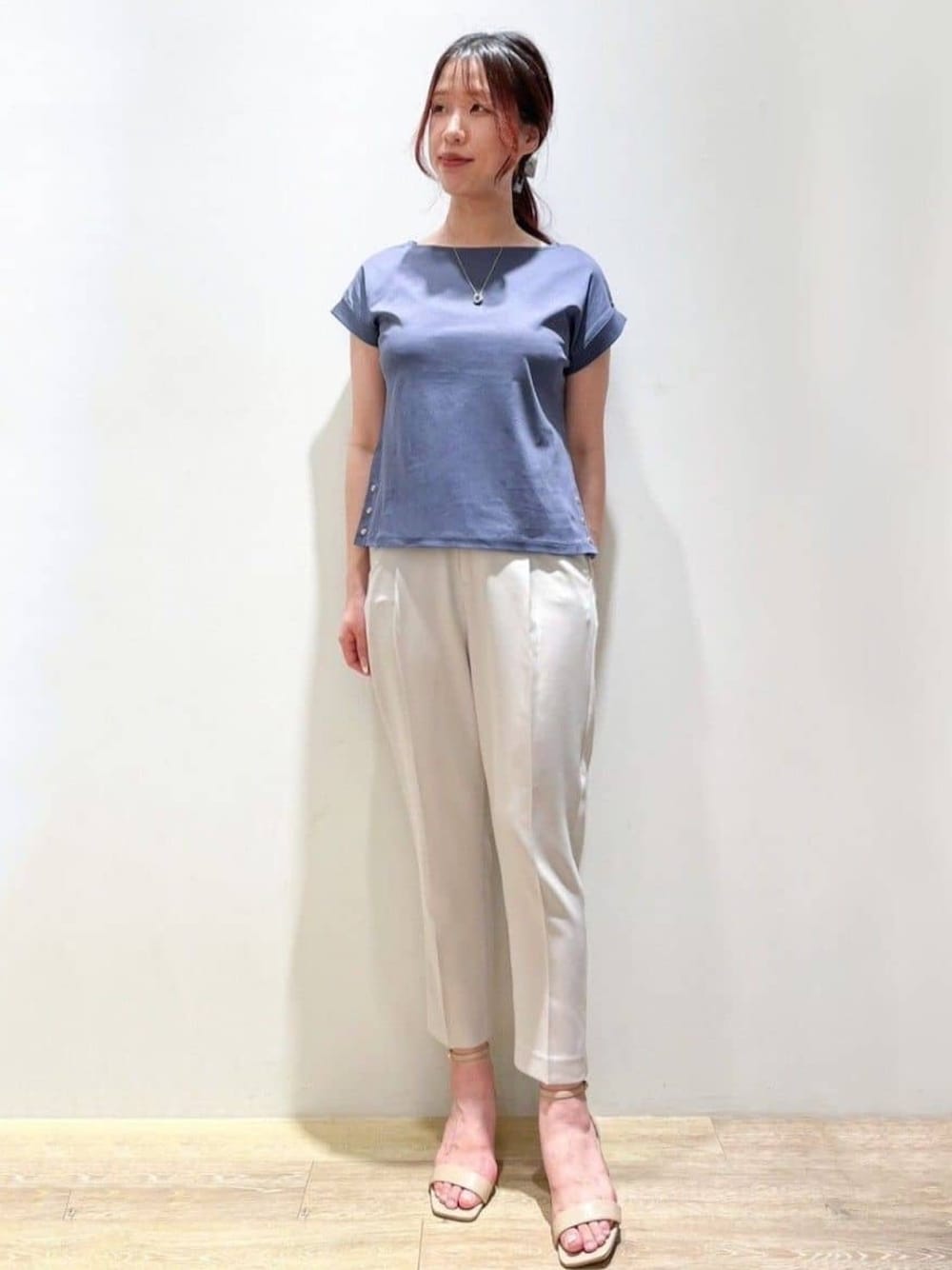 index スタッフ(INDEX)のTシャツ/カットソー「◆アイスタッチ サイドボタンTシャツ【接触冷感/洗濯機洗い可】」を使ったコーディネート